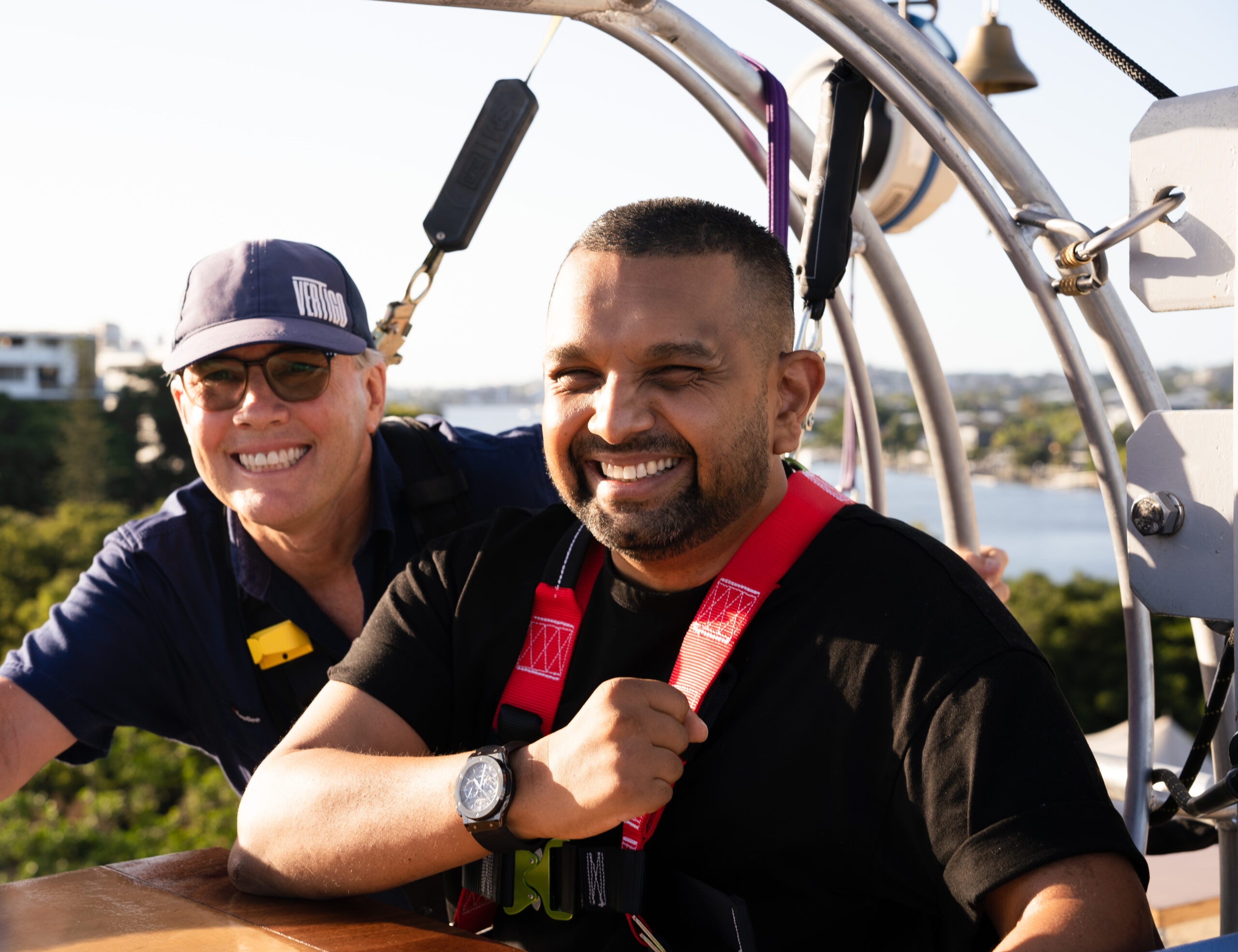At the top, they can enjoy a curated charcuterie box while soaking in panoramic views of the Brisbane Powerhouse – before being gently lowered back down from the edge of the building.