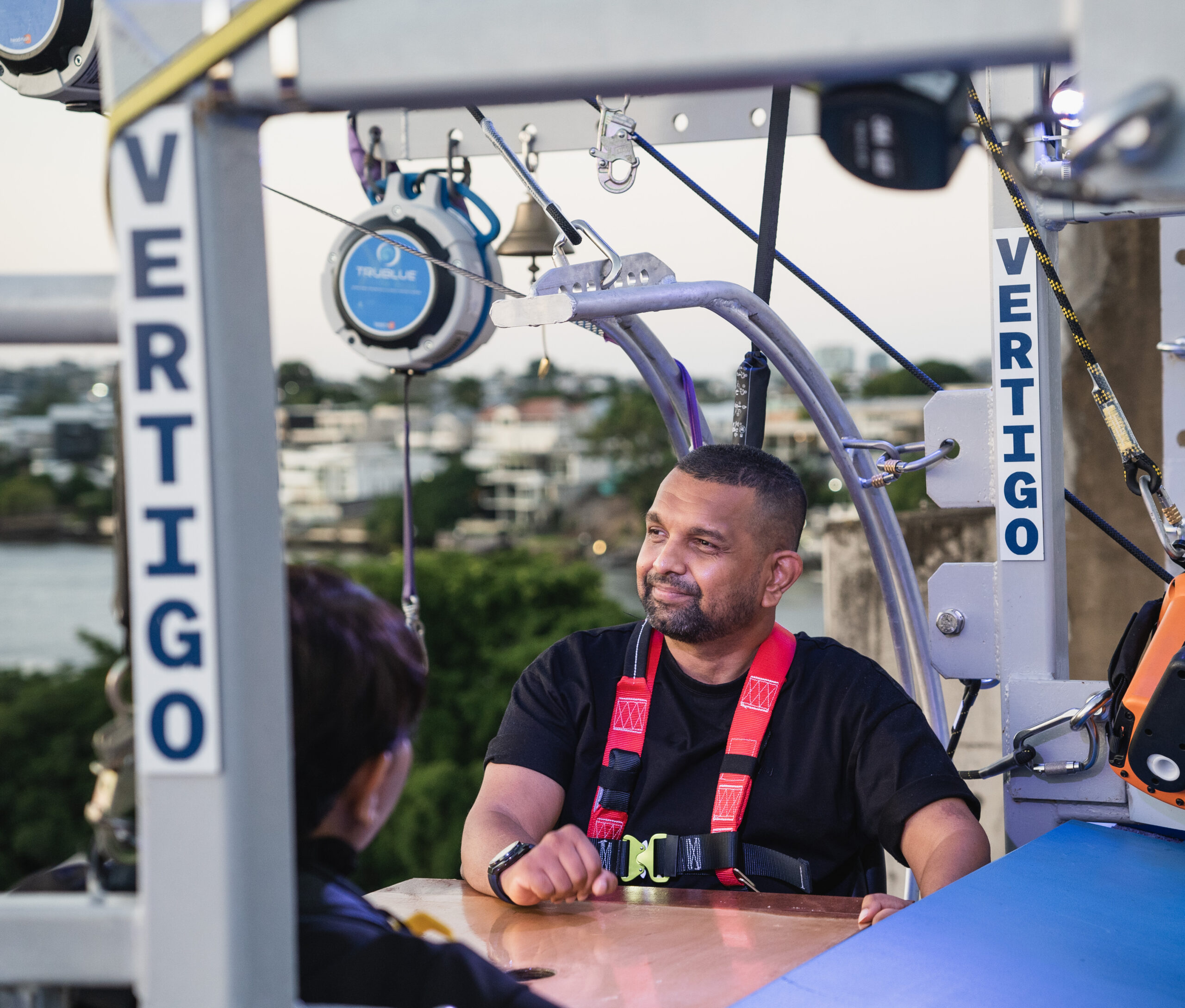 At the top, they can enjoy a curated charcuterie box while soaking in panoramic views of the Brisbane Powerhouse – before being gently lowered back down from the edge of the building.